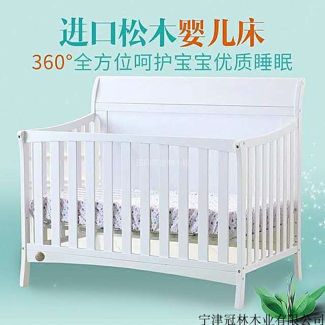 实木带护栏婴儿床多功能可高低调节婴儿床儿童床