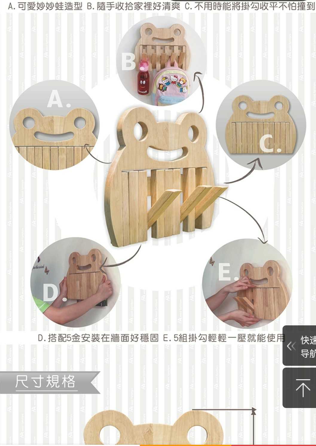 青蛙壁挂墙挂收纳挂钩动物造型可伸缩实木挂架环保无甲醛