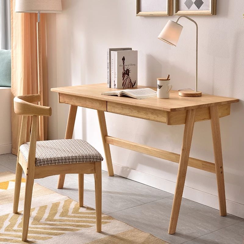 北欧简约实木书房书桌日韩式橡胶木电脑桌小户型学生学习桌1.2米