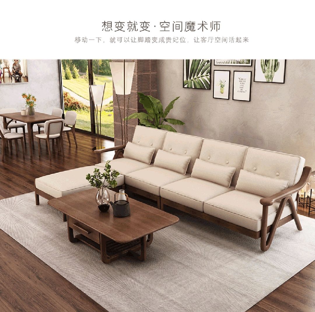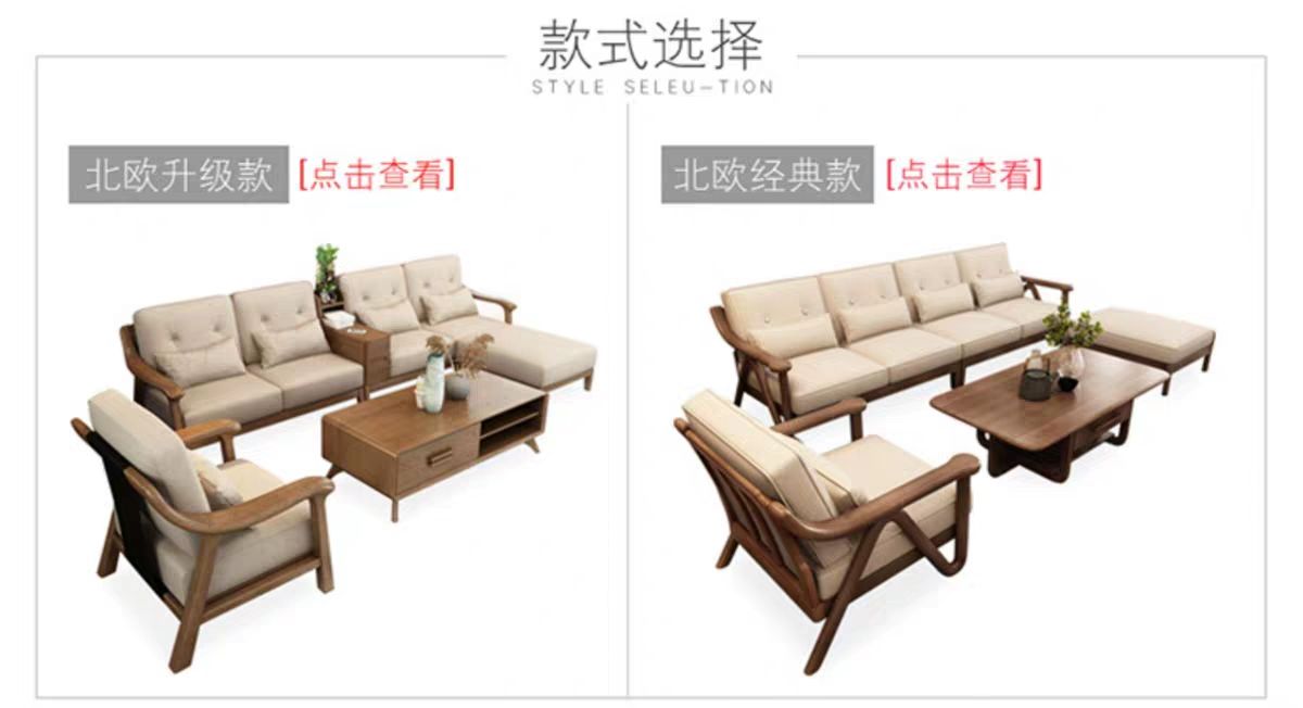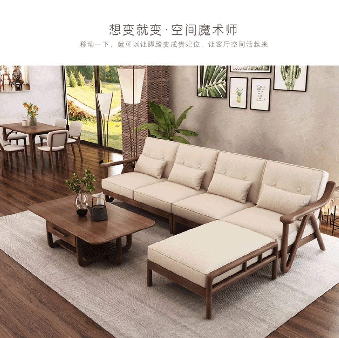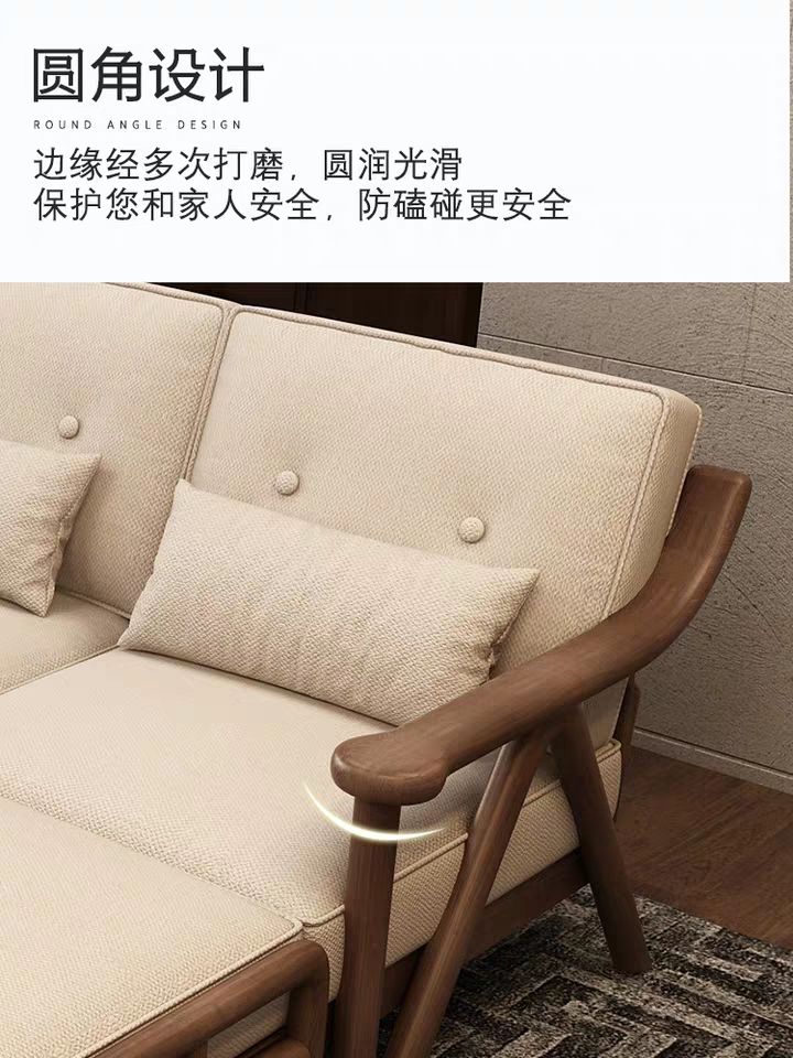 枫桠轩北欧实木客厅沙发小户型新中式橡胶木V字布艺自由组合沙发